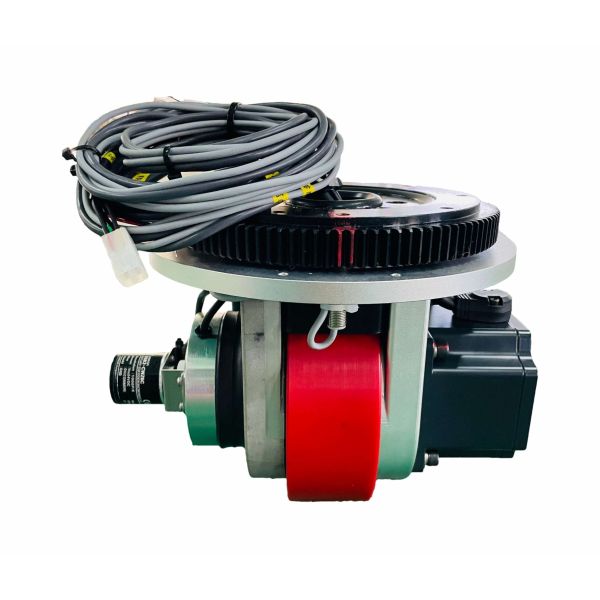 The steering wheel system integrates the driving and steering functions of the AGV robot, including the driver, drive motor, gear box, steering motor, deceleration device, wheel, brake device, limit switch and auxiliary parts.